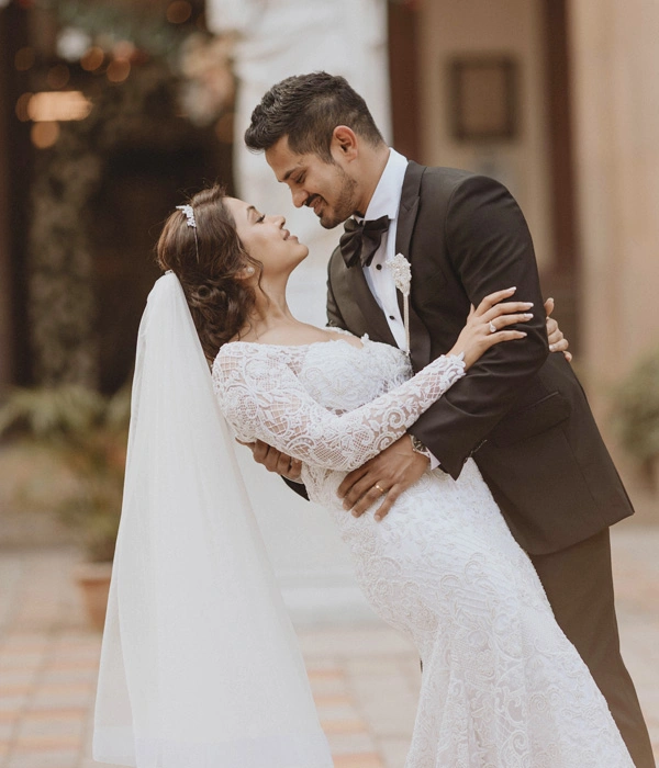 Indulge in the epitome of luxury and sophistication with this exquisite white mermaid gown—a masterpiece of elegance. Adorned with intricate hand embroidery, every stitch is interwoven with delicate glass beads, luminous pearls, and sparkling diamonds, creating a design that radiates opulence. The flattering neckline accentuates your natural beauty, while the gown’s sleek, figure-hugging silhouette flows effortlessly into a long, graceful train. Each detail, from the precise handwork to the carefully placed embellishments, is crafted with exceptional care, creating a stunning blend of modern glamour and timeless allure. Designed by a leading white wedding designer in India, this gown is perfect for any formal occasion where you wish to captivate and shine.