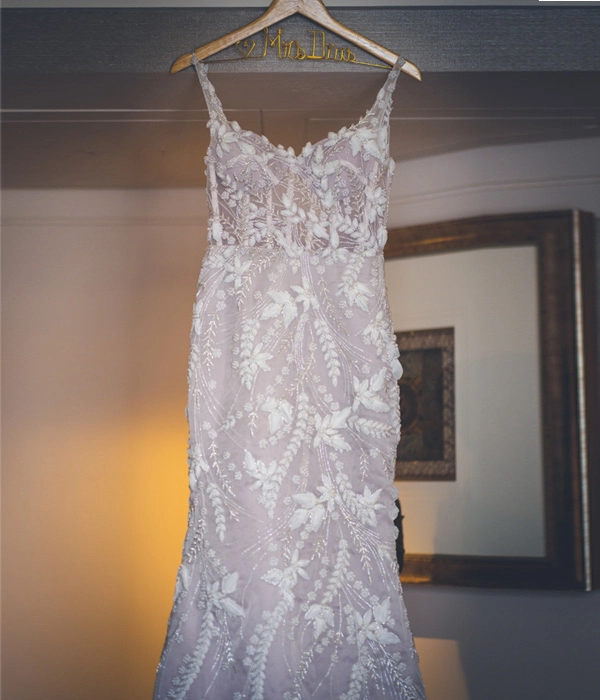The exceptional handwork on this gown is a true celebration of refined craftsmanship. Embellished with shimmering glass beads and delicate, hand-sewn flowers, every detail is thoughtfully arranged to form an intricate yet elegant pattern. The precisely-set diamonds impart a radiant sparkle, reflecting light beautifully with every movement, ensuring you shine from every angle. The harmonious fusion of these opulent elements, from the glittering beads to the perfectly positioned diamonds, elevates this bridal gown to unparalleled grandeur. The outcome is a breathtaking creation that exudes sophistication and elegance, making it the ultimate designer gown for weddings where only the finest will suffice. Perfect for a bride who desires to captivate and glow on her special day.
