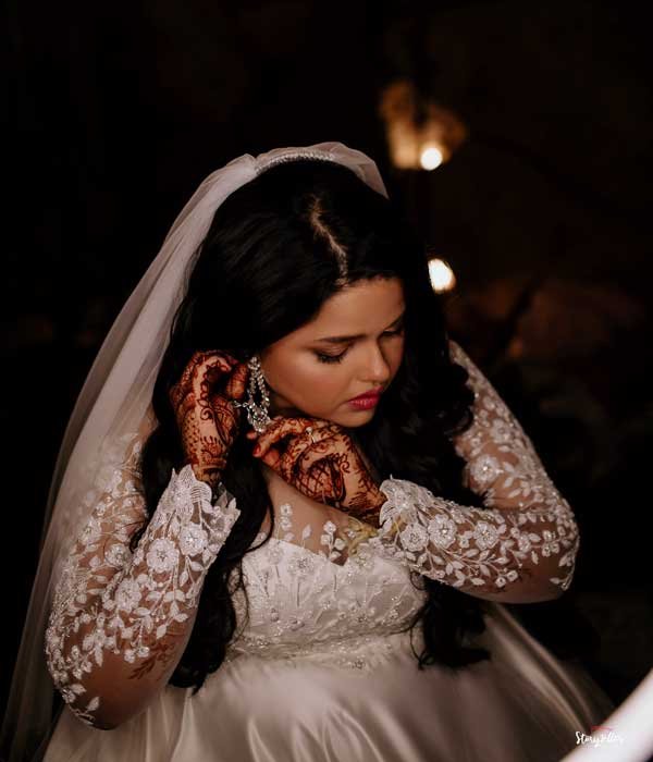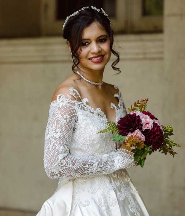 This exquisite gown features a full skirt designed for graceful twirls, allowing you to move elegantly throughout your special day. Crafted from luxurious tulle, it offers a subtle sheen and a comfortable fit, ensuring you feel both radiant and at ease. The bodice is adorned with intricate handwork, accented with pearls and stones that add a refined touch of opulence and sparkle. Full coverage provides a sophisticated and modest appeal, while the overall design seamlessly blends comfort with high fashion. Perfect for the bride who desires a harmonious combination of glamour and grace, this gown makes every moment truly magical.